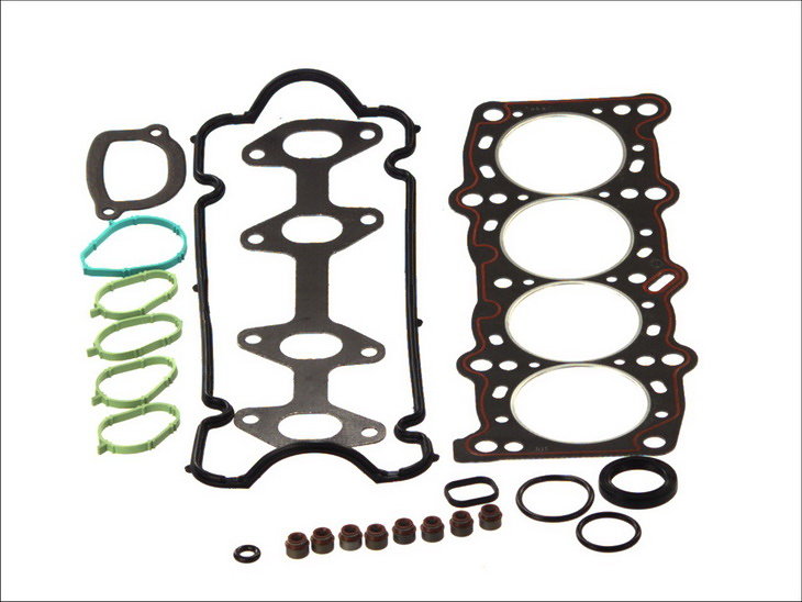 | Kompletny zestaw uszczelek do górnej części silnika zawiera w zależności od jego budowy wszystkie niezbędne uszczelnienia do głowicy silnika. W większości przypadków są to: uszczelka głowicy, kolektora ssącego, kolektora wydechowego, pokrywy zaworów, obudowy termostatu itp. Uszkodzenie którejkolwiek z tych uszczelek może prowadzić do mniejszych lub większych uszkodzeń, a nawet do poważnej awarii silnika. Objawy to: wycieki oleju z okolic głowicy, ubywanie płynu chłodniczego, wydostawnie się spalin lub nierówna praca silnika w związku z dostającym się do niego lewym powietrzem. Dlatego każdą zużytą uszczelkę należy wymienić jak najszybciej w wyspecjalizowanym warsztacie. Zaleca się wymianę całego kompletu. |