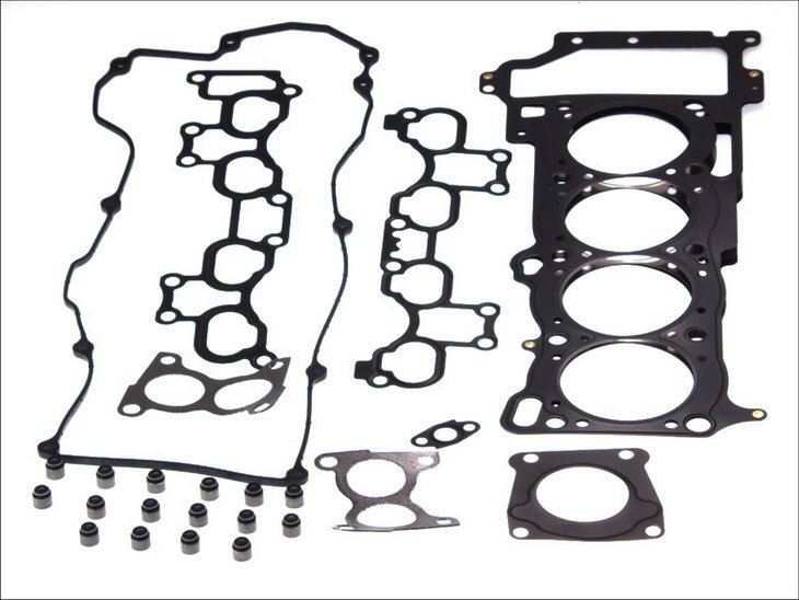 | Kompletny zestaw uszczelek do górnej części silnika zawiera w zależności od jego budowy wszystkie niezbędne uszczelnienia do głowicy silnika. W większości przypadków są to: uszczelka głowicy, kolektora ssącego, kolektora wydechowego, pokrywy zaworów, obudowy termostatu itp. Uszkodzenie którejkolwiek z tych uszczelek może prowadzić do mniejszych lub większych uszkodzeń, a nawet do poważnej awarii silnika. Objawy to: wycieki oleju z okolic głowicy, ubywanie płynu chłodniczego, wydostawnie się spalin lub nierówna praca silnika w związku z dostającym się do niego lewym powietrzem. Dlatego każdą zużytą uszczelkę należy wymienić jak najszybciej w wyspecjalizowanym warsztacie. Zaleca się wymianę całego kompletu. |
