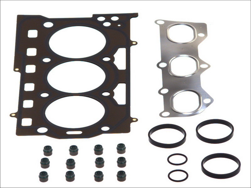 | Kompletny zestaw uszczelek do górnej części silnika zawiera w zależności od jego budowy wszystkie niezbędne uszczelnienia do głowicy silnika. W większości przypadków są to: uszczelka głowicy, kolektora ssącego, kolektora wydechowego, pokrywy zaworów, obudowy termostatu itp. Uszkodzenie którejkolwiek z tych uszczelek może prowadzić do mniejszych lub większych uszkodzeń, a nawet do poważnej awarii silnika. Objawy to: wycieki oleju z okolic głowicy, ubywanie płynu chłodniczego, wydostawnie się spalin lub nierówna praca silnika w związku z dostającym się do niego lewym powietrzem. Dlatego każdą zużytą uszczelkę należy wymienić jak najszybciej w wyspecjalizowanym warsztacie. Zaleca się wymianę całego kompletu. |